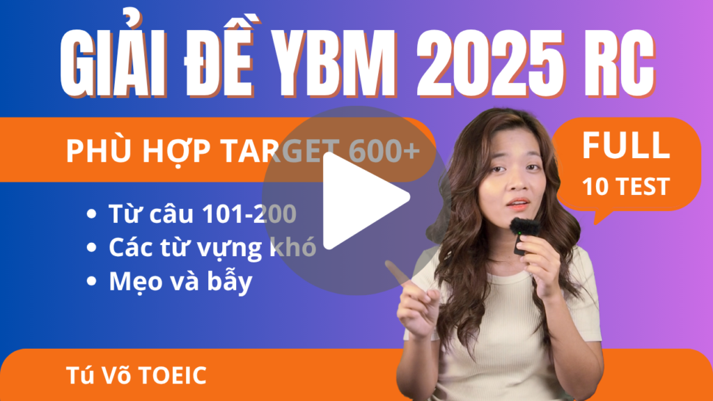 Trọn bộ video GIẢI ĐỀ YBM 2025 READING – giải thích siêu chi tiết từng câu hỏi với tư duy làm bài như một người với chuẩn TOEIC 900+